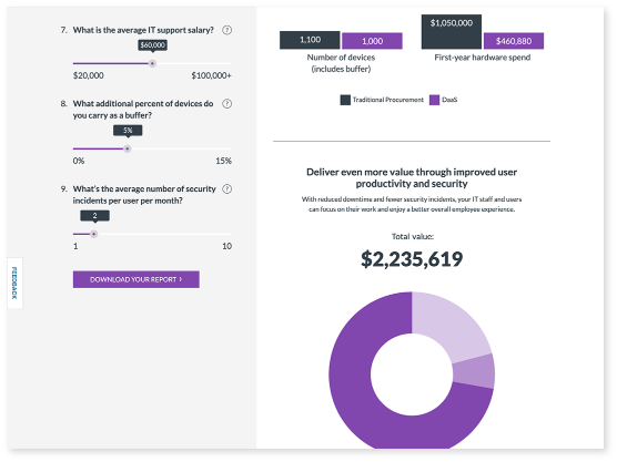 Once the calculations are complete, reports can be generated and exported as a personalized branded PDF or PPT in seconds to give the user a key take-away. Reports can be designed for a specific brand look, and output in multiple languages.