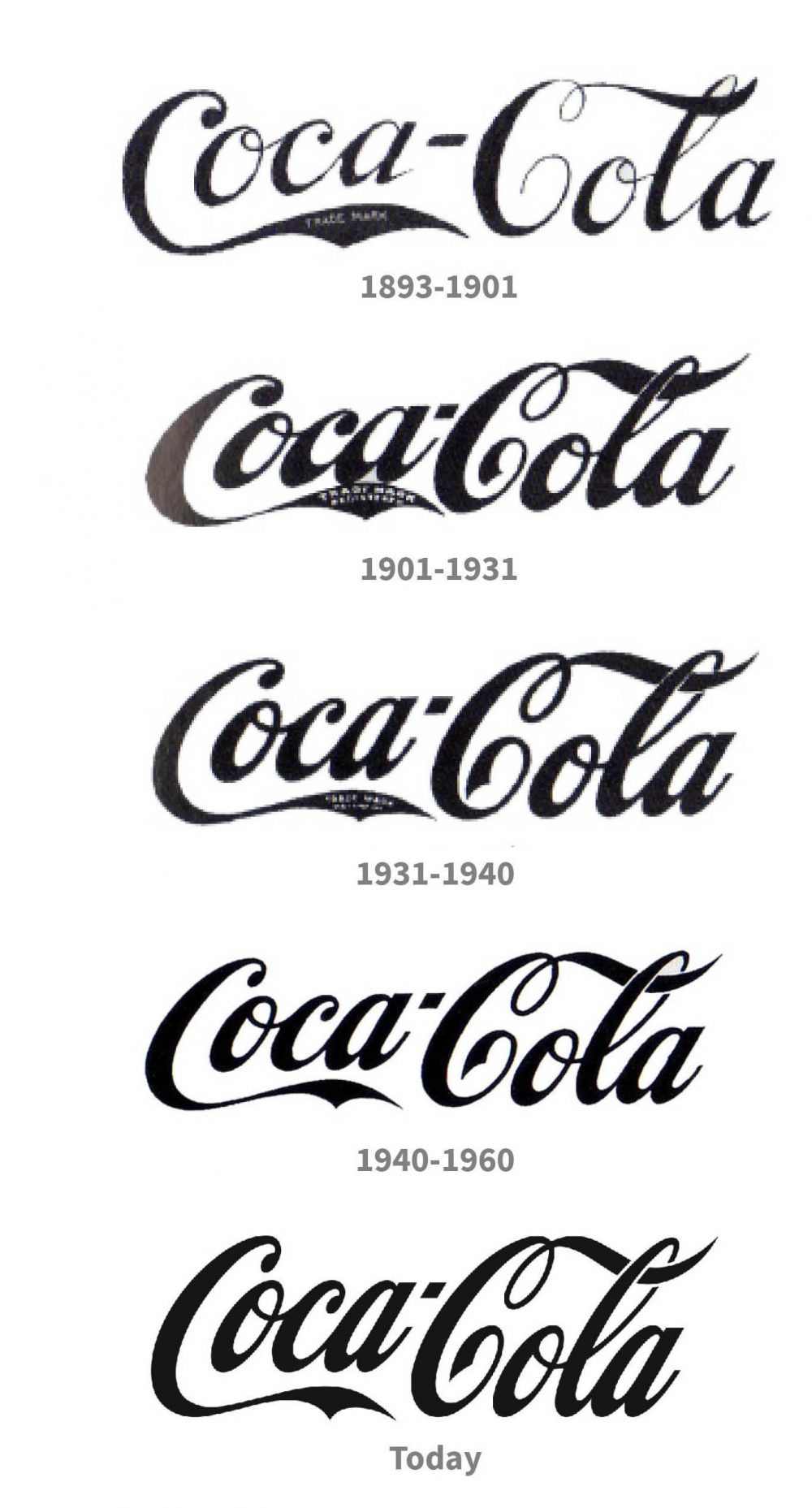 - Digital media requirements–Production issues forced many brands to confront the issues of how their logo was actually drawn, especially in the late 90’s when seeing the logo online started to become the norm in marketing. Many brands were not drawn to be reproduced by pixels, and needed to be re-drawn. Some brands used that opportunity to revise the logo entirely. Rebranding, renaming and repositioning a company is a large project—not every brand needs to needs to go through a full rebrand. Some companies need logos to be redrawn or updated in other ways to freshen up or stay current. Coca-Cola is a great example of a brand that updated their logo over time, yet it’s the same logo, crafted a bit differently. How often should you re-draw your logo? Not that often. Look at it closely every eight to ten years to evaluate how it’s holding up on various media platforms. Logo rendering is a production issue, not a strategic one. So if the logo doesn’t look good at 34 x 34 px, that just means it needs to be drawn for such a small size. It doesn’t mean the strategy of the company has changed.
