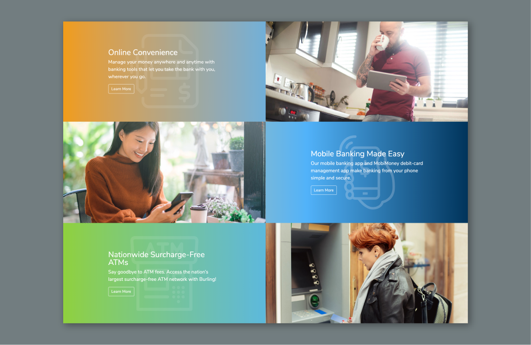 Today the bank’s brand refresh reflects a clear story, with a friendly, approachable voice, and value proposition that comes through in every aspect of the brand, including the redesigned website. Bank where you are, with people that know who you are. It’s simple, personal, and convenient–the way banking should be.
