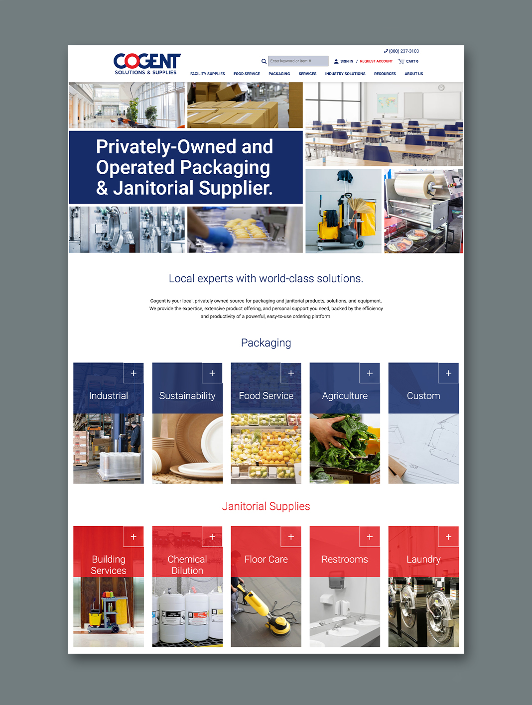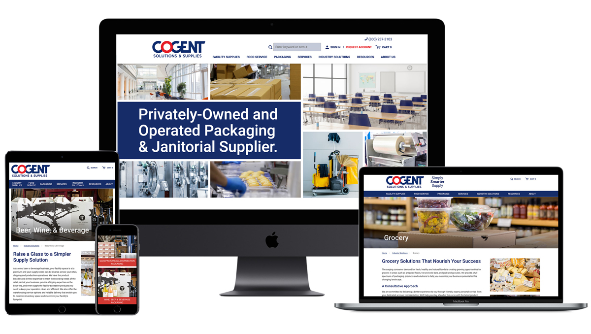 We took all of the insights from customers and employees to determine a name change would be necessary to grow the business, and set them apart from their previous location based name. In the interviews we learned first hand, that the company had a knowledge base in helping customers in the packaging industry that was unparalleled. They helped not only solve a packaging problem, but could recommend streamlined solutions for a customer supply chain that would save valuable time and money. In short, they came to customers with solid, clear solutions. Their thinking was Cogent. We presented many business name ideas, however, the one that stood out and defined their approach to industry solutions was Cogent. It’s short, two syllables and easy to say and remember.
