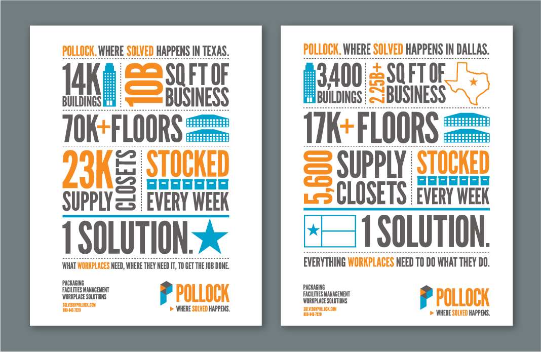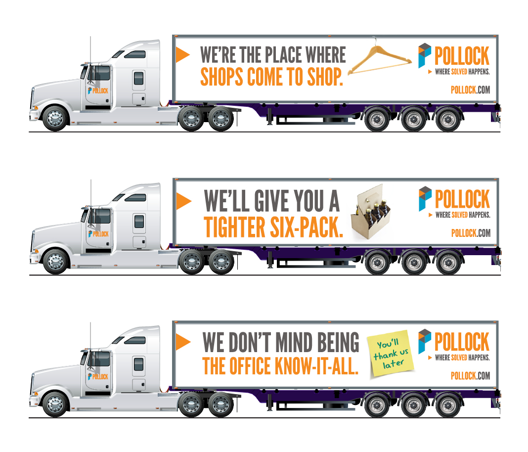 Pollock also maintained a large truck fleet that gave them a platform for brand impressions on the road. Truck campaigns were constructed with fun memorable headlines that aligned with the brand and were consistent from truck to truck. People tell us all the time when they see a “Pollock” truck. Other customer touch points included an updated website, a series of microsites, sales presentation tools and digital content campaigns, all to pave the way for the next phase of company growth.