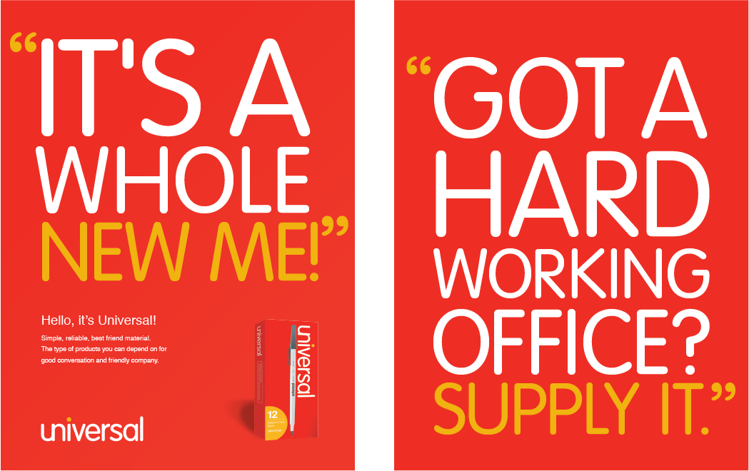 Universal is a private label brand with over a thousand office supply and specialty private label products that cover the entire office. It’s sold nationwide, through distributors and resellers as a value option to fit budget needs against traditional office product brands. The brand had become tired and needed a new look to compete against larger brands in the marketplace.